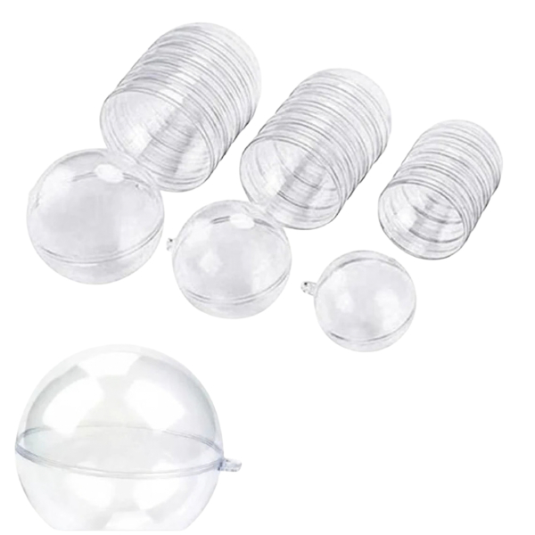 Las esferas transparentes para manualidades son adornos rellenables, generalmente de acrílico o plástico resistente, compuestos por dos mitades encajables.